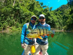 Estamos hablando nada más ni nada menos que del espectacular Cichla temensis conocido comúnmente en Brasil como tucunaré y en castellano como Pavón, esta especie es originaria de la Amazonía y la Orinoquía, según se ha investigado el pavón más grande que se ha registrado de la especie que tenemos en nuestro municipio de Norcasia, fue capturado en brasil y pesó 29,4 libras. En el embalse Amaní ya se han capturado hermosos pavones de hasta 18 libras, y se habla que han observado animales mucho más grandes.